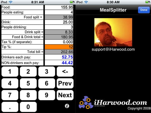 Though we really like the functionality Meal Splitter ($1) and Meal Splitter v2 ($1) from iHarwood, we really do not like the fact that the developer—rather than giving early customers a free upgrade—has split these two virtually identical applications into two separate paid options.