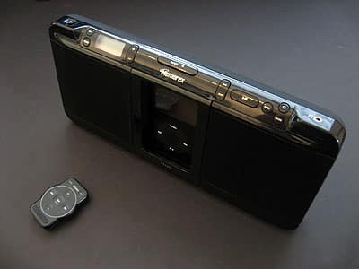 Pros: The new benchmark for value in $100 portable iPod speakers, delivering nice aesthetics, impressive functionality, and great pack-ins for a surprisingly aggressive price. Includes digital FM radio, Infrared remote control, audio cables, and acceptable sound quality by standards of earlier $100 iPod speakers. Runs off of included wall adapter or self-supplied AA batteries for up to 15 hours. Great carrying case; well thought-out in virtually all regards.