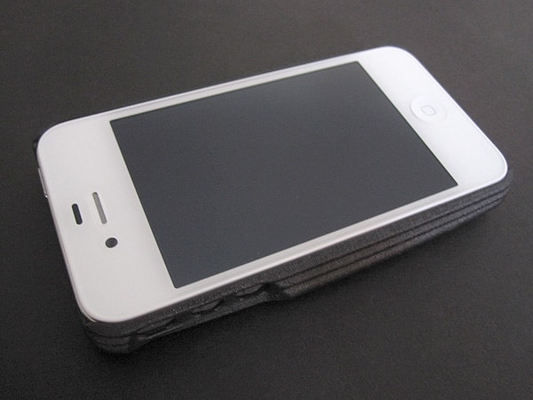 Openings along the left side for the side switch and volume buttons are designed for the GSM version of the iPhone 4 only, meaning it can’t support the Sprint or Verizon iPhone 4, or any iPhone 4S. There’s also a recess in the case for an RFID card, and an electromagnetic shield is included to keep the phone from wiping the data on the card.