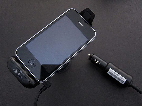 GPS for iPhone 3G/3GS and 2008-2009 iPod touch Models. The single most interesting feature of the Premium Car Kit is one that iPod accessory makers were talking about adding to Apple devices even before the invention of the iPhone and iPod touch—a GPS receiver. To get an obvious question out of the way quickly, the receiver doesn’t make a huge difference in performance when connected to an iPhone 3G or 3GS; both units have their own GPS hardware, and gain roughly as much from being positioned directly next to the windshield as from having another GPS receiver to play with. But with the 2008 and 2009 chrome-bezeled iPod touches, the Kit makes a big difference: install the Magellan app without the Kit and you’ll be sitting around waiting endlessly for a GPS signal to appear; plug the iPod touch into the powered Kit, and voila, Magellan will suddenly be able to find your location on a map and provide functional if not spectacular turn-by-turn GPS functionality, as well.