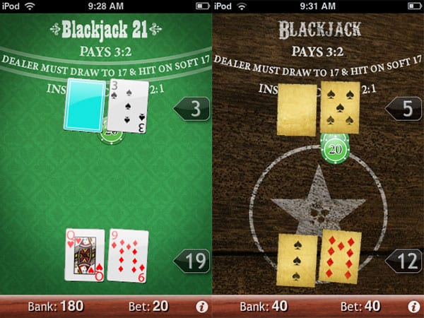 If you want to play the game without fussing around with settings, you can just do that—you’re given some gambling chips to bet in whatever quantity you prefer, you’re dealt two cards, and you use intuitive swipe gestures to stand, hit, double down, or surrender.