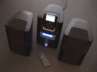 Pros: The evolution of Monitor’s earlier, highly recommendable i-deck, now with a Universal iPod Dock, integrated AM/FM RDS radio tuner and screen, and more button-laden remote control. Preserves strong audio quality of prior model, which is most impressive in highs and mids, tight in bass, and offers user-positionable speakers.