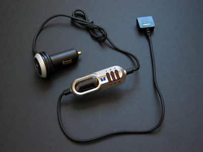 Pros: A combination in-car iPod charger and FM transmitter cable that’s easy to install in various cars, and also easy to read to determine the current state of an iPod’s recharging cycle. Offers FM transmitter tuning from 88.1FM to 107.9FM in .2 increments, three preset stations, competent audio quality by current standards.