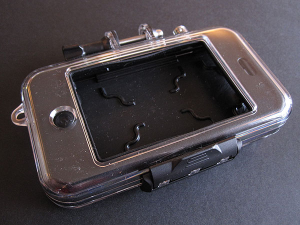 The release attaches to the bottom right edge of the case, allowing Outride to be hooked up to any of the included mounts. Also included is a wide-angle lens, allowing for 170° viewing.