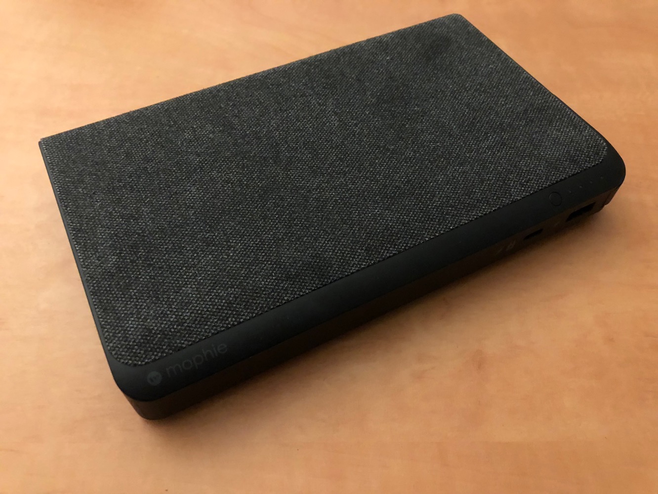 We have to admit as well that powerstation AC is one of the more attractive external battery packs we’ve seen, with a fabric wrap that makes it comfortable to hold. Mophie also advertises it as helping to keep it from scratching other devices that it may bump up against in your bag, although it’s worth keeping in mind that the fabric doesn’t completely cover the corner edges, so you’ll still want to be careful about just tossing it into your bag.