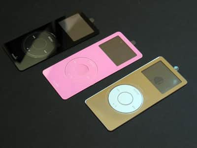 Simply put, we liked how the iGlaze nanos looked on our test iPod nanos: Moshi’s pink version was a real gimme of an idea, letting the many fans of pink iPod minis finally have a nano-ready alternative, and even though the chrome face plate version shows fingerprints as badly as the nano’s metallic rear plating, it’s a fun, and even smart offering. The ability to color-flip a black nano to white or a white nano to black with face plates is similarly cool, and there’s even a U2 iPod version now with a red Click Wheel and black body.