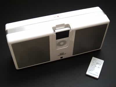 Pros: A powerful iPod boombox that uses two large full-range drivers to deliver superior audio quality to its lower-priced rivals, with rich, full, and reasonably clean sound that will please all but the pickiest listeners, making music sound big and powerful. Runs off C-cell battery or wall power, includes good Infrared remote control.