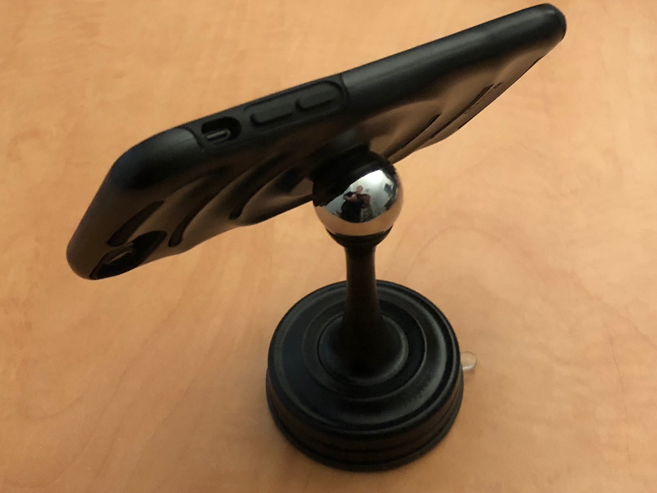 The cradle portion of the system is also available in eight different colors and includes one of the strongest suction cup mounts we’ve seen, allowing to attach very securely to any clean, flat surface, and non-porous surface such as a windshield, mirror, desk, or cabinet. The nature of the metal ball joint and magnetic attachment also means that there’s basically no stress put on the mount when attaching or removing the encased iPhone or moving it around, although the magnet is strong enough that we found that we either needed to pull it off in a rapid motion directly away from the base, or slide a finger around the back to gently separate the case from the ball. In either case, however, the mount stayed very firmly attached to our windshield.