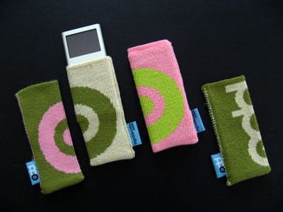 Sold in two-packs for $21 (nano) or $24 (iPod 5G) and available in a variety of colors, Odd Safety Socks feature “odd” or bullseye-style logos in one color with a second color for their backgrounds.