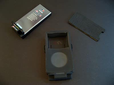 Bearing an uncanny similarity to the Sonnet Volta battery we’ve previously reviewed – as well as other OEM battery packs we saw on a recent trip to Asia – Newer Technology’s NuPower ViDEO+ (Video Plus) is a strap-on battery pack for the fifth-generation iPod, paired with a matching silicone case and a foam spacer pad that guarantees its compatibility with thinner 5G models.