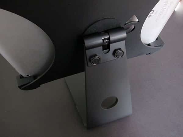 A hole in the back allows you to connect a self-supplied Dock Connector cord; you need to screw the stand together with an included screwdriver.