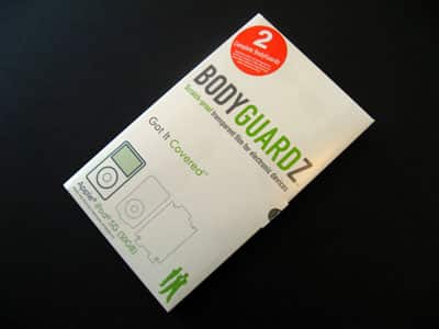 Now a company called NLU Products has released BodyGuardz ($25), an alternative to InvisibleShield that caught our attention for one major reason: it promised optical clarity. As good as InvisibleShield is at resisting scratch damage, it isn’t perfectly invisible or clear; rather, it looks a bit like baked Saran Wrap once it’s been applied to the front and back of your iPod. When a video’s playing at most brightness levels through the 5G iPod’s screen, you can’t really see the dimples in the plastic film, but when light and other objects reflect against the iPod’s body, they’re obvious.