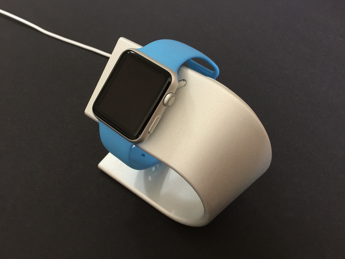 Nomad’s Stand for Apple Watch ($70) is a soon-to-be-released Apple Watch stand. Coming in silver or space gray, Nomad’s minimal stand is made of one piece of solid aluminum. A recessed channel allows Apple Watch’s charging cable to be hidden away and routed out the back of the stand.