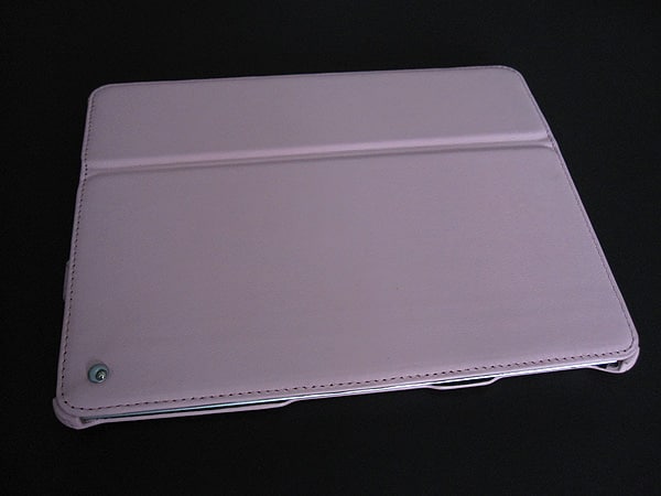To hold the whole thing shut, a tab folds over from the back. Round magnets with smaller concentric circles attach to one another. Unless you’re specifically trying to line them up correctly, it’s pretty difficult, unlike Apple’s auto-aligning magnets on the iPad Smart Cover. It’s also surprising that Noreve didn’t integrate any sort of stand functionality into this design.