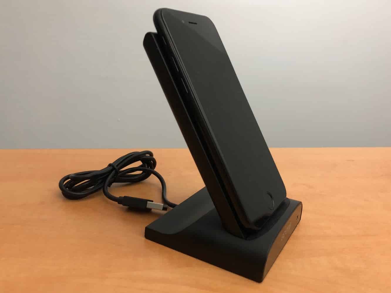 The other end of the battery pack includes four metal contacts that are designed to mate with the included dock for recharging the battery pack at your desk or side table. The battery pack itself supports both Qi wireless charging and traditional USB cable charging, although you can’t charging using both methods at the same time — connecting a device to the USB port will disable the wireless charging feature. Eight dual wireless coils make it easy to put the pack against your iPhone in just about any orientation to get a charge.