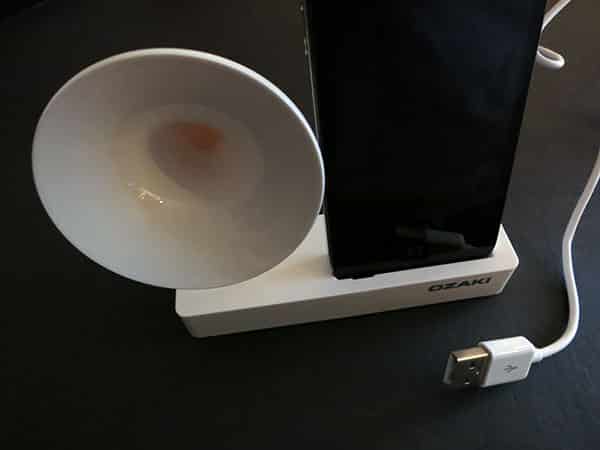As new variations on its earlier, cheap-feeling passive speaker amplifiers for the iPhone 4, Ozaki has released the bizarrely-named iSuppli Gramo ($50) and iCarry Time2brick ($25) — the former a supposedly “eco-friendly speaker with charging dock” and the latter a “unique FaceTime stand for iPhone 4.” Packaged in yet another of Ozaki’s wastefully huge boxes, iSupply Gramo apparently achieves eco-friendliness by using a gramophone-shaped tube to boost the audio of either iPhone by 15 decibels — a huge jump that unfortunately isn’t matched by improved fidelity, but does enable you to hear even the less powerful iPhone 4 speaker very clearly without using additional power.