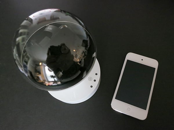 Once the app’s installed, you can use pan and tilt gestures to move the camera lens inside the clear lightbulb-shaped top through a wide arc, and straight upwards, though barely downwards.