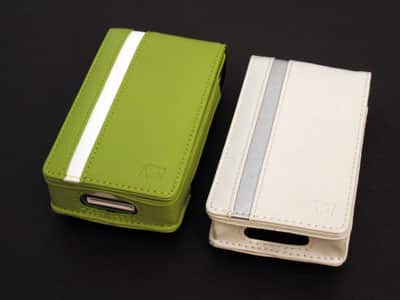 We’ve had the chance to check out the arctic white and luscious lime cases, and while we’re generally pleased with both of them, we preferred one aspect of the white case’s design to the green’s, and three aspects of the company’s earlier iPod mini cases’ designs to the newer ones. First, the white Flip Case uses a novel metallic silver stripe that looks even better than the plain white stripes that appear on most of the company’s other iPod cases. It’s a cool spin on the color schemes of full-sized iPods, and the better of the cases we saw.