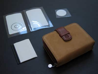 Though they look a lot like retrofitted pocketbooks, it would be unfair to summarily dismiss Pacific Rim Marketing’s iDitti Commuter (formerly iDiddy Commuter) cases for iPod nano and 5G ($60 each) that simply; these travel case-slash-wallets come in your choice of brown suede or calfskin leather in black or white, and are designed to hold one iPod, a wrapped up pair of headphones and/or charging cable, an ID card in a transparent pocket, three credit cards, and perhaps a few folded-up bills. You pick a case size specific to your iPod model: nano, 30GB, and 60GB versions are sold separately. One Opticover – good clear film for the front and back of your iPod – is included with each Commuter case, along with a nice tool to help you remove air bubbles during installation.