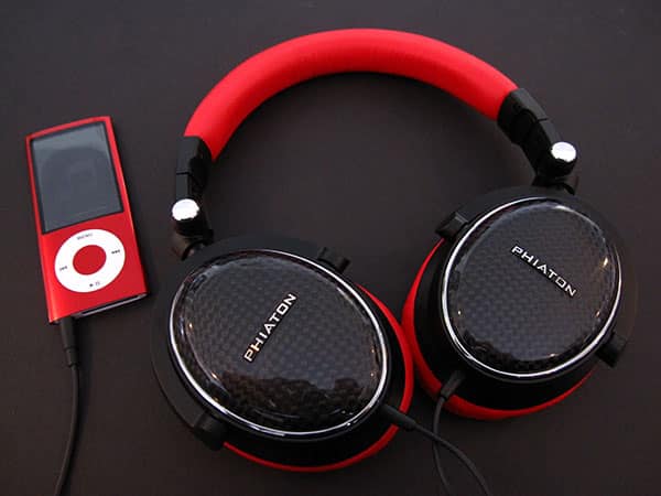 Most notable about the Phiaton MS 400 Earphones ($250) is the claim that their earcups are made with “Carbon Fiber Enclosures” for high-quality audio; these big red and black earphones use relatively small, pivoting earcups with glossy-plastic covered material that may or may not be actual carbon fiber, plus bright red ear and head pads.