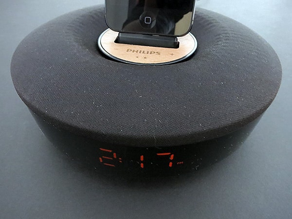 But there are other factors that may lead you to consider one speaker over the others. The DS1155’s most distinctive features are arguably its iOS self-setting clock and soft night light, though each is notably less impressive than what might be assumed from Philips’ packaging and marketing materials. First, the clock face is a dim brown, rather than rich amber, and even at the brightest of its three dimming levels is difficult to see in anything other than weak ambient light. It’s also so small and low to the surface of a table that you’ll likely only spot it when you’re on eye level with it—assuming it’s on a nightstand. Similarly, the amber undercarriage night light shifts between three settings: either off, super dim, or not particularly bright.