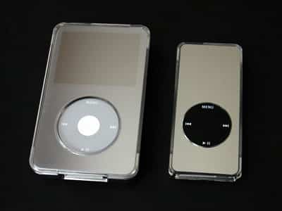 Pros: Largely protective, chrome-like mirrored hard plastic cases for iPods and iPod nanos, each including three shells – an opaque mirrored rear shell, a translucent mirrored front shell, and a totally clear front shell – together allowing you to enjoy full or partial mirror-like reflectivity without scratching your iPod’s body. Eye-catching mirrored front plate lets you see iPod’s screen when backlight’s turned on.