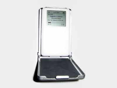 This wasn’t something we had expected. United Kingdom-based Proporta and other companies have been selling aluminum PDA cases for years, and Proporta specifically has won a fair share of acclaim for its designs. Most of the company’s PDA cases are sleek, impressively designed to hug the curves of the products inside, and renowned for their protective qualities. Proporta’s iPod case, like many others, opens into two pieces – one back piece comprising two thirds of the case’s thickness, and a front panel with a metal locking clasp on its top and a hinge on its bottom.