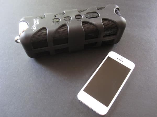 Some of the most notable new small Bluetooth speakers have supplemented their portability with ruggedized features, and Pyle Audio has joined the pack with its SoundBox Splash ($70, aka PWPBT60). Previously known as Sound Flow, a name that appeared on the box we received for review, SoundBox Splash is an unusual speaker for several different reasons. Roughly Jawbone Jambox-sized, the speaker has a metal grille set back behind raised rubber, with two speakers and a 30-Watt amplifier inside — surprisingly high quality and power for the low price tag. Pyle claims that SoundBox Splash is “marine grade” waterproof and shock resistant, with packaging showing it in water, however, there’s no submersion test certification for the speaker, and its actual waterproof performance turned out to be questionable. That might explain some inconsistencies with the pricing: despite the stated $70 MSRP, the speaker is listed at $75 on the link to purchase from the company’s website, down from a one-time list price of $147, and at review it, it was available for only $57 on Amazon.