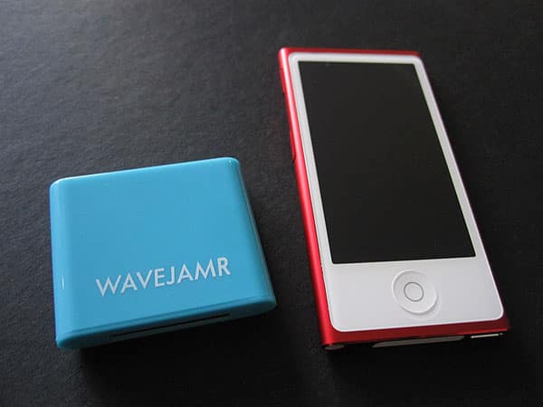 The 1.5” by 1.25” by 0.25” adapter is very light—too light—and the plastic feels inferior. It has one output—the Dock Connector port on the bottom—and the only other interruptions to the plain blue material are the product’s name printed on the front, its Bluetooth pairing code on the back, and a hole on the top to expose an LED. The use of a Dock Connector port is beneficial because no external power sources or batteries are needed with most modern Dock Connector speakers, but unfortunately this also limits WaveJamr’s usefulness to only those devices with the appropriate plug. RadTech sells ProCable Line-Out ($24) as a solution to this issue, which converts the Dock Connector to stereo 3.5mm and USB plugs, allowing the accessory to be used wherever an audio input and USB port are available.