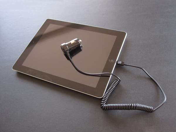 The car charger, strikeDRIVE, is only the second 2.4A auto accessory we’ve yet seen; the first was Odoyo’s Micro Car Charger with Lightning Connector. It features exactly the same Lightning plug as strikeBASE. Rather than a straight cable, this one is coiled. Stretched out, it’s also longer than the three feet Scosche lists. The charger is impressively small, and certainly nicer looking than Odoyo’s.