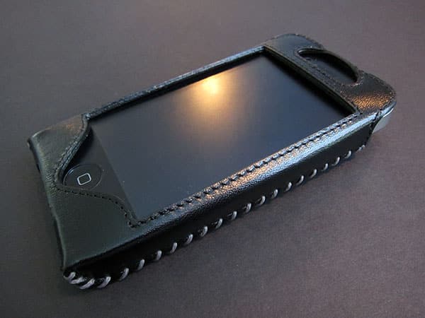 Made in Turkey from visibly impressive-looking Italian leather, Sena’s new lineup of iPhone 4 cases is largely comprised of sequels to prior-generation versions. Shown first in our photos is the basic playthrough case Sarach Leatherskin ($60), which has distinctive contrasting side stitching and an open face with no belt clip attachment.