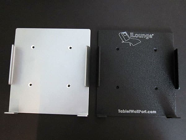 Available in six colors and two “fits” — “naked” and “case” — Shek Designs’ iPad Wallport ($50) is essentially a single piece of aluminum that’s been shaped to hold an iPad in either portrait or landscape mode, then painted and bundled with wall and 100mm VESA mounting hardware. Each Wallport uses bent, inflexible arms to hold the iPad in a sturdy fixed position within its frame, using included felt pads for padding.