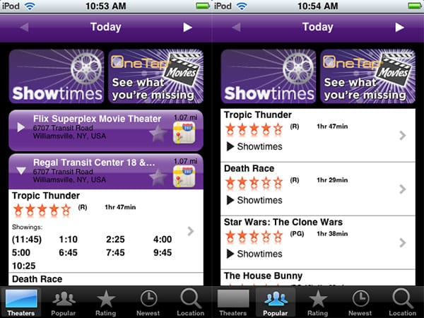 On a more positive note, Avantar’s Showtimes (Free) is a free version of OneTap Movies, stripping out only a couple of its frills—movie posters and trailers—while keeping the rest of the interface almost entirely intact.