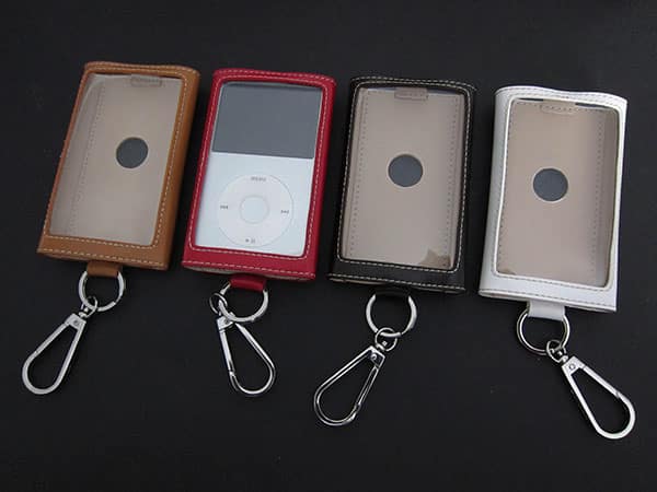 Sold separately is the company’s Leather Collection Carabiner Style Case for iPod classic ($30), which resembles leather and clear plastic cases previously released by Japan’s Tunewear, but with lighter leather and metal components.