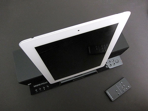 Before discussing anything else about Sound Step Recharge, we need to pause for a moment to praise Soundfreaq for all of the little things it has done correctly in this design. The unit’s left- and central-faced orange-lit indicator lights are stylish and elegant, as are the simple controls off to the left and right front sides. Sound Step Recharge works perfectly to dock iPads, including ones inside some—possibly most—cases, and works equally well with iPhones and iPods, as well. And the rechargeable battery works properly, too, enabling the system to operate regardless of whether it’s plugged into a wall or used elsewhere around your home or office. Soundfreaq doesn’t include a carrying case to exploit the unit’s portability, and it’s certainly not as thin or easy to bag as Logitech’s similarly-priced S715i, but its use of concave buttons and use of a bottom storage compartment to hold its included Infrared remote control will help to prevent accidents if you’re going to carry it around.