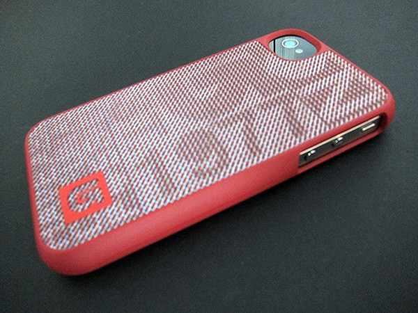 Though the basic concept of the hard plastic shell/fabric-backed Fitted Case remains the same from Speck’s prior iPhone 4 and iPad Fitted Cases, some new details really caught our attention this time out. Both versions we received use a really interesting colored fabric with purple, clay red, and green dots (“Headache Dot”) to hide Burton iconography at different distances, as well as a rubber Burton logo that sits on top of the fabric as if it’s poking through from the case — nice and really eye-catching touches.