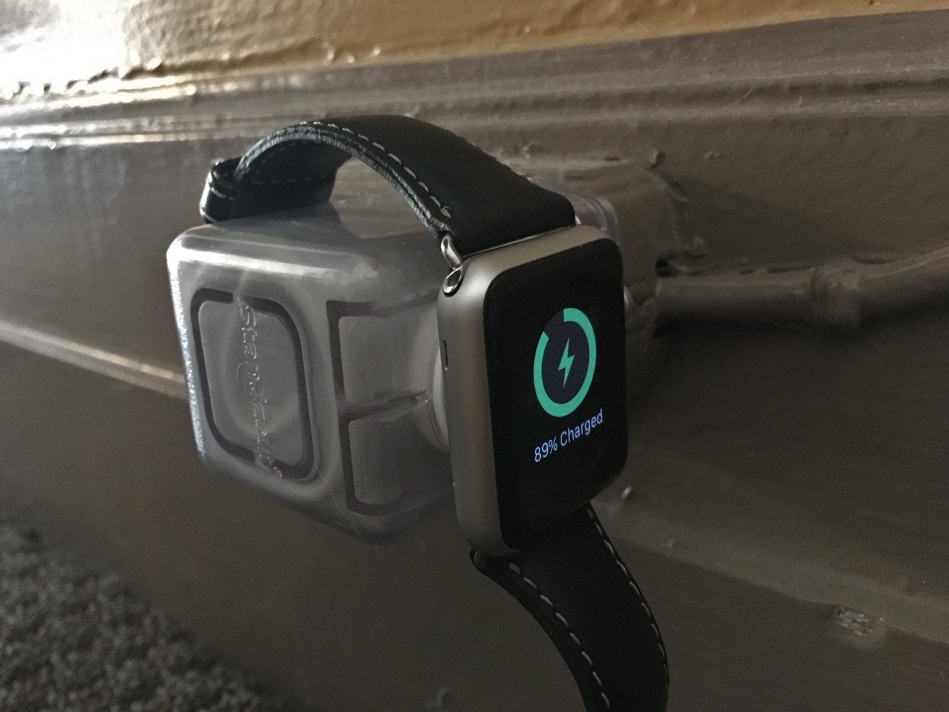 Helix Dock is a straightforward clear plastic dock, designed to be plugged directly into a wall outlet. An Apple Watch cable is inserted in the dock and wrapped around a cable storage space on the inside. The small Apple USB wall adapter is inserted into Helix, and then both plastic pieces are closed to make one secure wall adapter.