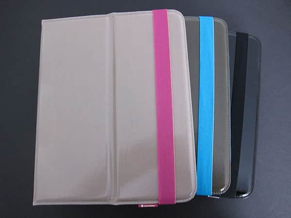 We’ve become so accustomed to SwitchEasy knocking new designs out of the park that we’re occasionally puzzled when something odd slips out of the company’s labs and into packaging. Canvas for the iPad ($50) is one of the odd ones, a fairly tame folio-style design that’s rendered unusual by its use of a canvas-ish glossy plastic exterior, paired with a gray microfiber interior lining, and in two out of the three versions, bright pink or blue faux leather iPad holders with matching pockets.