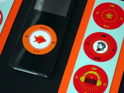 Available in six different 3-packs, Capsule Stickies are Click Wheel stickers sized for the iPod nano, featuring art by yolkdesign. A pack called Japanorama has three stickers with Japanese-translated Menu text, Communist features Sino-inspired art with Chinese-translated Click Wheel icons, and other packs – Elegance, Sterile, Morbid, and Shutter – use Western-style icons and English text.