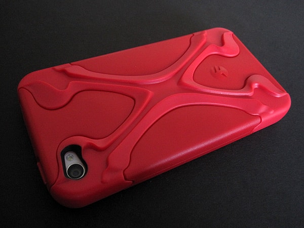 The base is a soft, rubbery plastic shell that wraps around the device. It’s malleable enough to flex around the phone, but has enough structure to not stretch out from being applied or removed. If you chose to, you could use the case like this, but the complete solution is finished by a sturdy plastic X-shaped support that fits into a groove on the back of the case. It snaps into place like a puzzle piece, and covers all four corners.