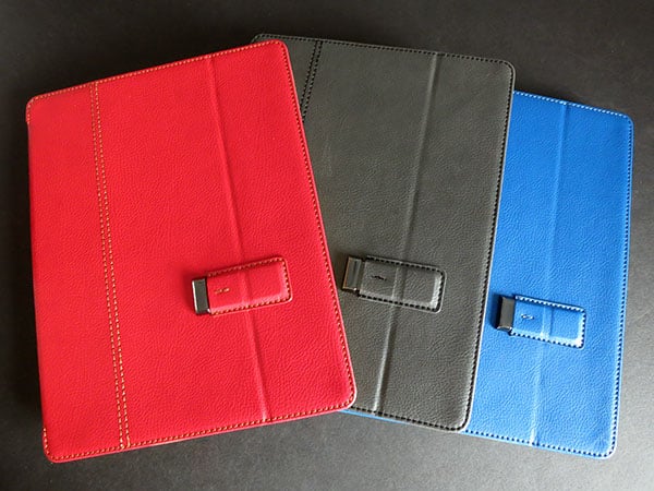 First previewed just shy of three months ago, SwitchEasy has finally released its newest case Pelle ($60), designed for the iPad 2 and third-generation iPad. Somewhat interestingly spun off of the company’s earlier folio-style cases, it combines the look of a leather case with a hard plastic rear shell, while adding a unique metal stand support. Available in red, blue, black, pink, and turquoise, the latter two versions of the case are special pastel editions embedded with six Swarovski Elements crystals. Each of the five colors includes headphone port and Dock Connector port covers, a screen protector, cleaning cloth, and installation card.