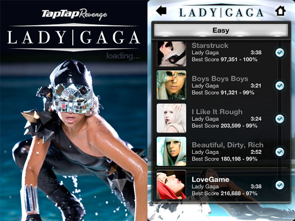 Adding to its hugely successful series of Tap Tap Revenge rhythm tapping games, Tapulous has recently released Lady Gaga Revenge ($5), featuring the music and visuals of pop musician Lady Gaga. As with every prior paid version of Tap Tap, the newest one makes iterative improvements to the prior formula, and though we weren’t as impressed with this game as with Tap Tap Coldplay, fans of Lady Gaga will enjoy the music and the legitimately challenging tapping action.