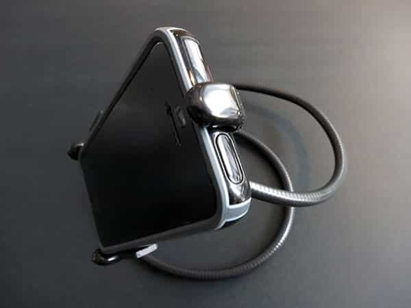 A ball joint behind the iPhone mount and the gooseneck work together to let you adjust the iPhone’s angle and position to your liking on a flat surface, or you can wrap the coil around something to achieve unusual mounting positions. The result is effectively an infinite variety of possible orientations.