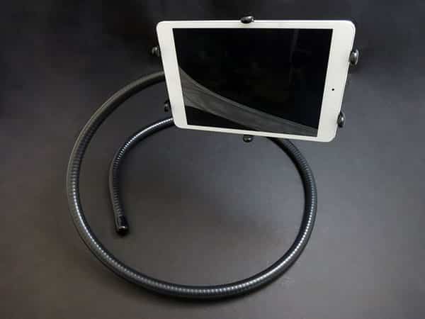 That said, there are things that PED4 Coil IPM10 can do that traditional iPad stands can’t. With a single coil at the bottom, the rest of the gooseneck can hold an iPad mini at roughly chair arm height elevation. Similarly, you can coil it and still have enough neck left to elevate the iPad mini to eye or top-of-head level when placed on a desk—while remaining fairly stable in that position. There’s even enough coil to wrap PED4 Coil IPM10 fully around a body, though we can’t think of an actual reason to do that.
