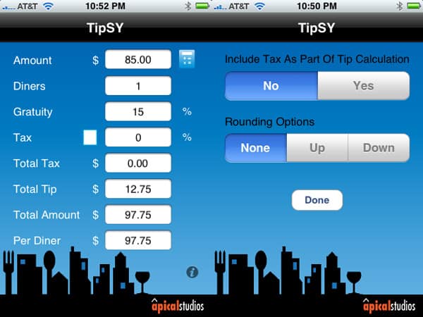 TipSY ($2) from Apical Studios is a simple, straightforward tip calculator application.