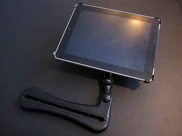 CoulVue ships with a metal wrench to secure its rubber-padded mounting arm to the headrest of a car, and uses an arm with four separate articulating joints that can each bend on one axis, while the iPad holder rotates 360-degrees as needed.