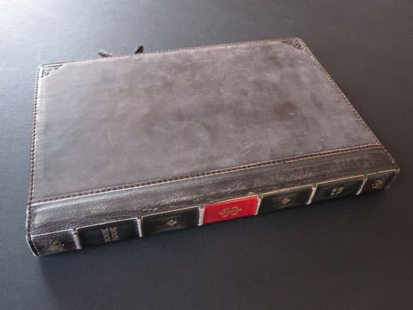 From the outside, the case resembles a hand-crafted leather-bound book, and it looks as great as the rest of the line. As with other Twelve South cases, a little bit of weathering is a good thing here, adding character. The spine looks just like an old book, with gold accents including the phrases “BOOK BOOK” and “VOL XII,” the latter of which amusingly represents the company’s name.