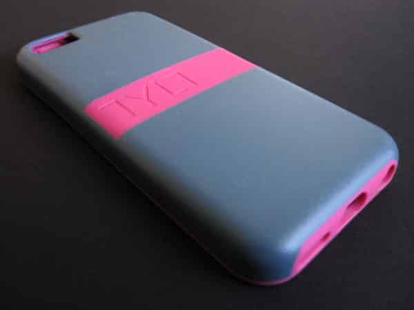Structurally, Tylt’s Band is very similar to [OVRMLD], although it uses the rubber more extensively. Available with bright yellow, pink, or blue rubber against grey plastic, the case is pretty much identical in its dimensions. Instead of the plastic stopping at the back, it runs up the sides, leaving the rubber exposed as a lip around the screen, and in segments surrounding the buttons and ports. The plastic also cuts away in a strip along the back, with the rubber sitting flush as an accent. Band’s openings are a little bit smaller than [OVRMLD]‘s, but they’re still large enough to accept third-party cables.