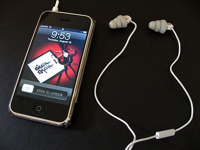 That’s what Ultimate Buds has done, without noticeably shortening or damaging Apple’s cord in the process. Consequently, you get a pair of fully iPhone-ready, high-quality isolating earphones with microphone and call controls, yet you’ll actually pay less through Ultimate Buds than you would if you bought unaltered ER-6is directly from Etymotic. You still get everything from Etymotic’s package, including a nice zippered carrying case, foam and silicone ear tips, and a shirt clip.