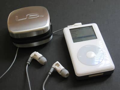 There’s a lot to like about the super.fi 5 Pros. The package shares certain aesthetic characteristics of the company’s more expensive offerings, including a metal carrying case – slicker and more practical than the one packed with the more expensive phones, actually – and cables with gold tips at both ends, one side cleanly detaching from the earpieces, the other attaching with a slim white L-shaped connector to your iPod. You can replace the cables ($20) if you prefer – most people won’t – or add an old-fashioned two-plug airplane adapter ($10).